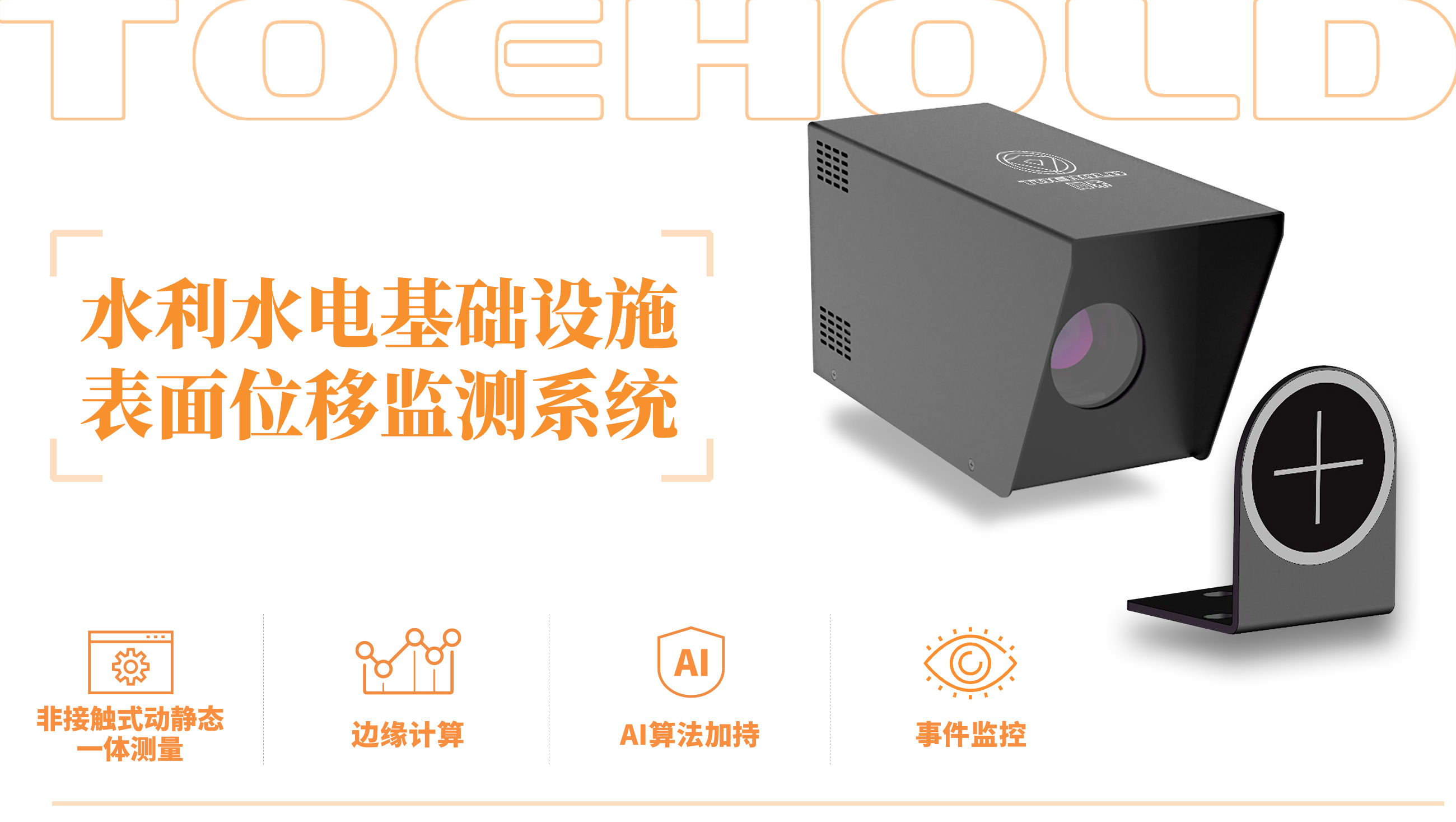 水利水电基础设施表面位移监测系统是基于机器视觉测量技术,采用物联网技术及智能灾变识别算法,能够将图像数据转化为变形数据,可对各类水利水电基础设施进行超高精度、非接触式实时测量的智能化监测系统。系统由机器视觉智能测量仪、靶标、机器视觉调试软件、同感云平台组成。