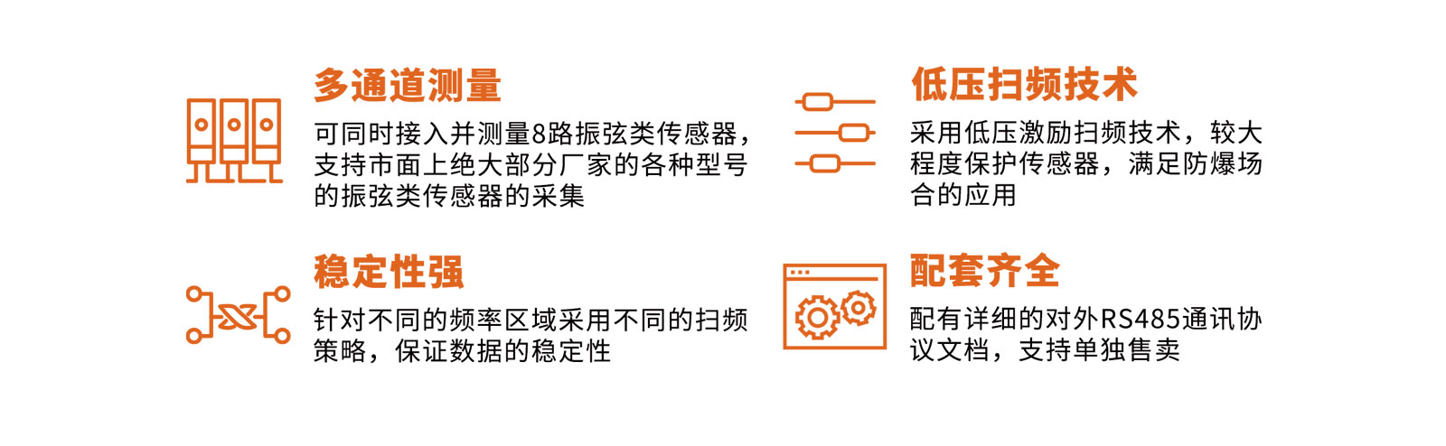 振弦类传感器可以被封装成多种形式用来测量各种物理量(应力、应变等),广泛应用于土木工程领域的各个场景中,多通道振弦采集仪可接入各种振弦类传感器,实现振弦传感器的数值采集和数字化传输。