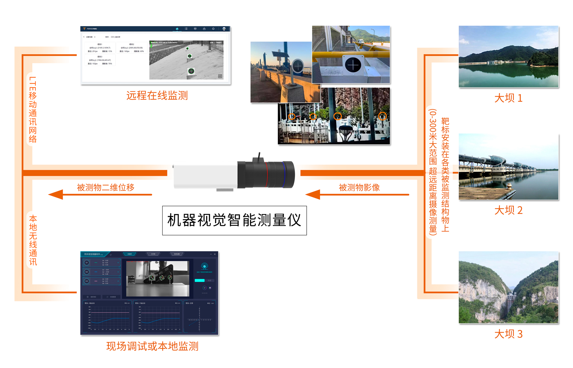 机器视觉智能测量系统是基于物联网技术及智能灾变识别算法,能够将视频数据转化为变形数据,可对水库大坝、水闸等各类水利基础设施进行亚像素级、亚毫米级精密测量的智能化监测系统。该系统符合国家水利部发布的《水文监测数据通信规约》,可将数据智能推送至第三方平台;入选水利部《2022年度水利先进实用技术重点推广指导目录》,已在全国多个水利工程标准化建设项目中获得应用。同禾科技的智能化监测系统及整套方案服务为大中型水闸安全监测智能化发展和水利工程标准化管理创建提供了可靠的技术支撑,有力推动各项水利工程标准化管理水平提升。