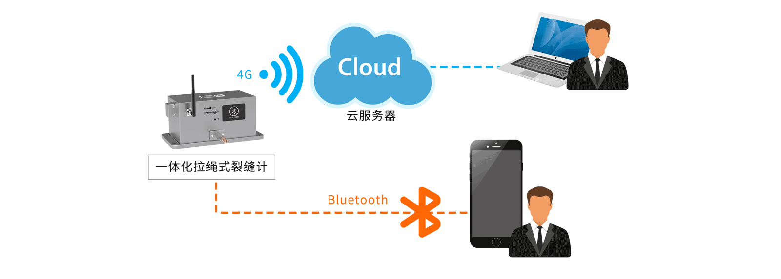 一体化拉绳式裂缝计TH-LS-C2000内置线性位移传感器、MEMS加速度传感器、MEMS倾角传感器、地磁角传感器,可实现对结构物的裂缝、加速度、倾角及地磁角等参数的自动化测量。