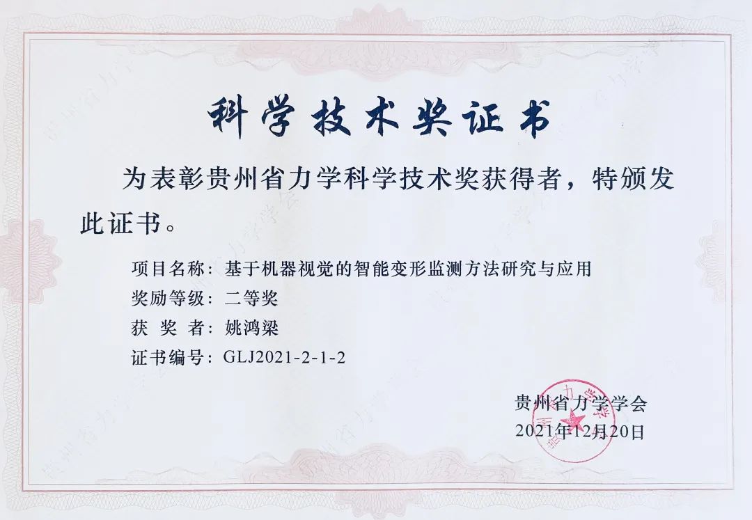 日前,同禾科技参与完成的《基于机器视觉的智能变形监测方法研究与应用》项目获得“2021年度贵州...