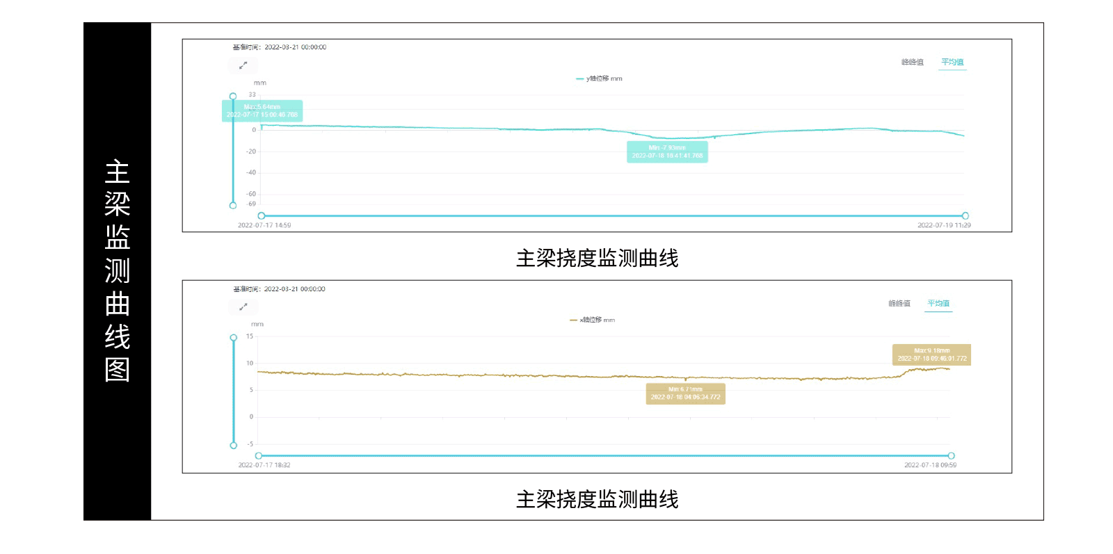 监测系统自安装运行至今,设备运行稳定,对桥梁主梁挠度进行了高精度测量,得出该大桥结构总体处于健康状态,无明显的过大变形。